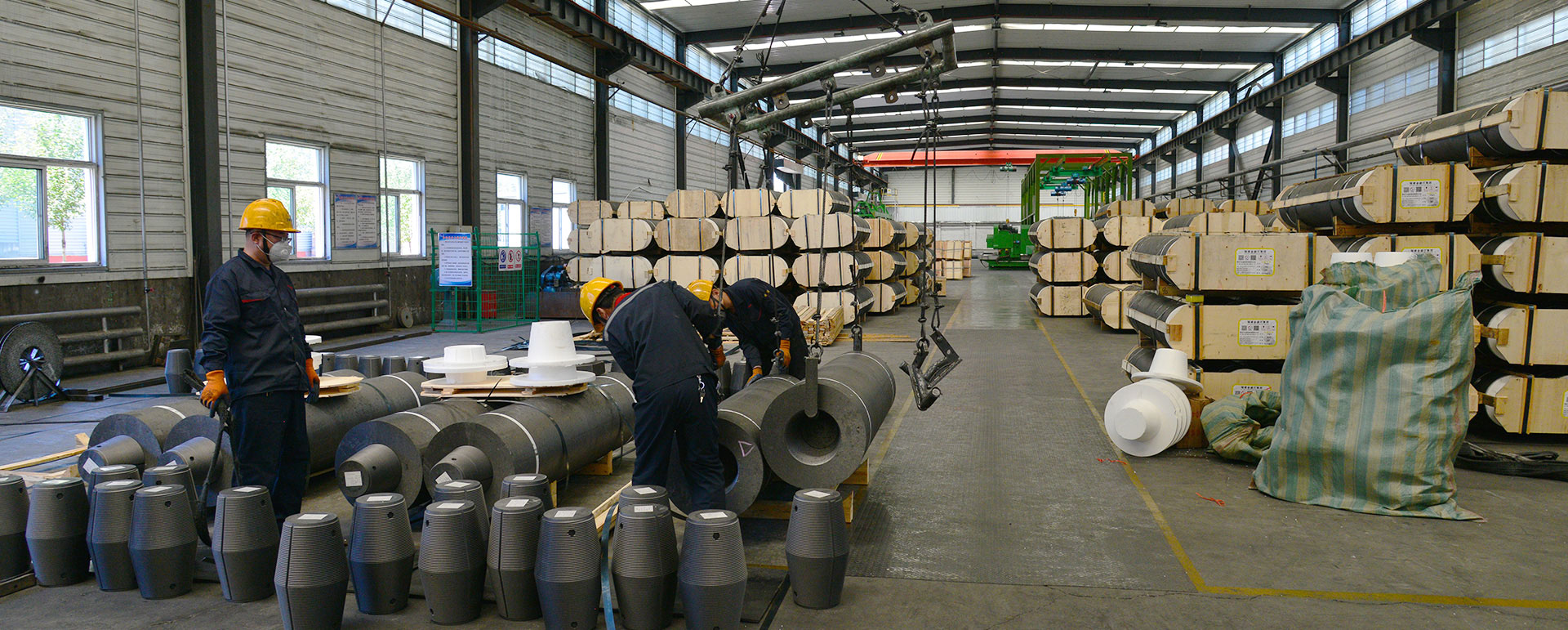 高純石墨材料及其制品用木箱、內(nèi)襯用塑料布包裹,并用打包鋼帶捆扎
